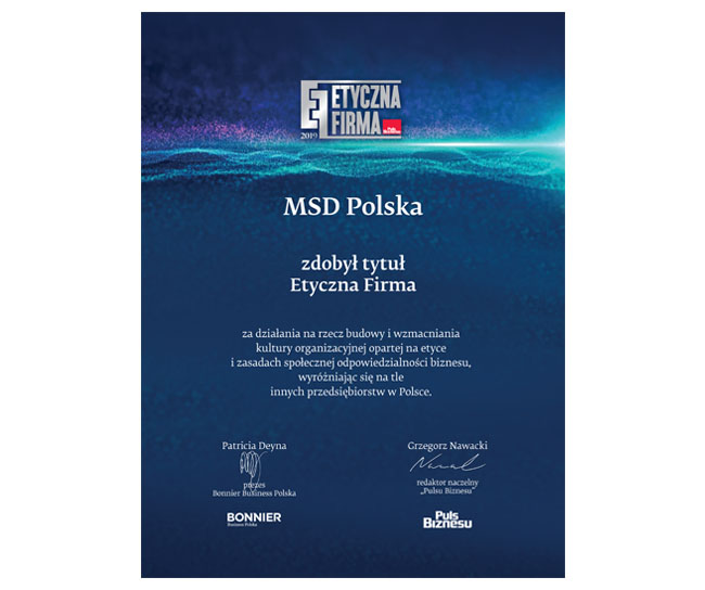 MSD Polska otrzymuje tytuł Etyczna Firma 2021